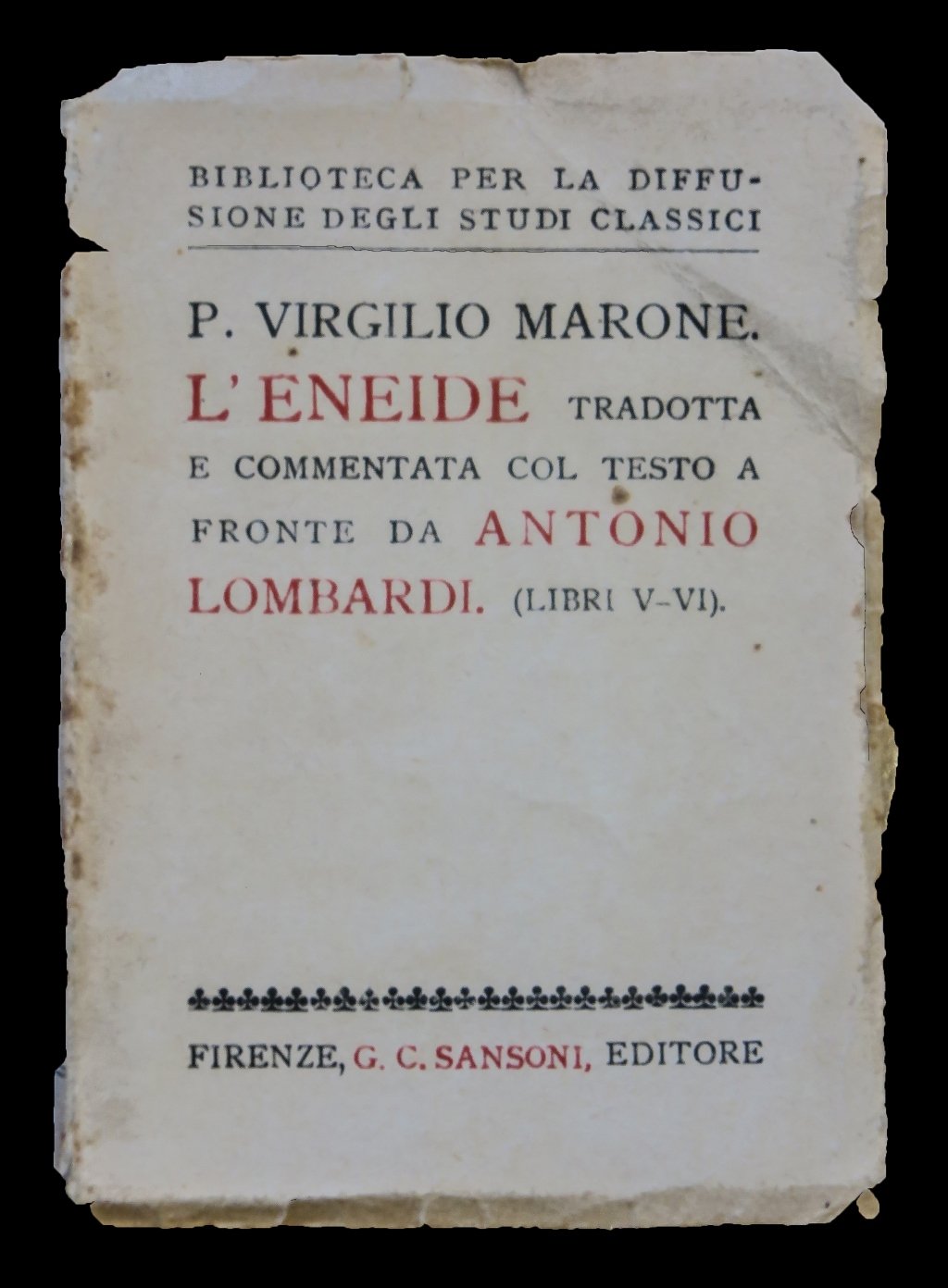 Testo latino a fronte, tradotto e commentato da Antonio Lombardi. Generale ingiallimento, volume non rifilato, usura esterna