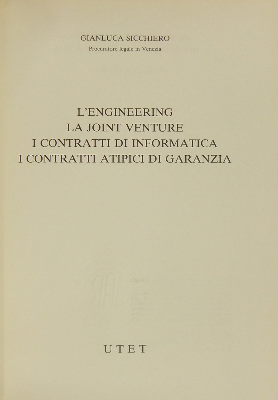 L'engineering, la joint venture, i contratti di informatica, i contratti atipici di garanzia | Libri antichi e moderni | Sicchiero Gianluca