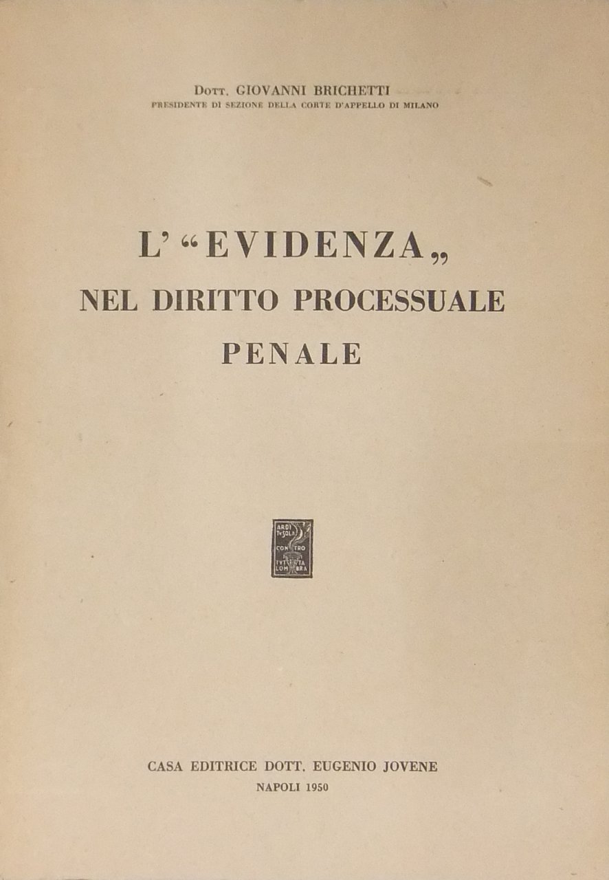 L'"evidenza" nel diritto processuale penale | Libri antichi e moderni | Brichetti Giovanni