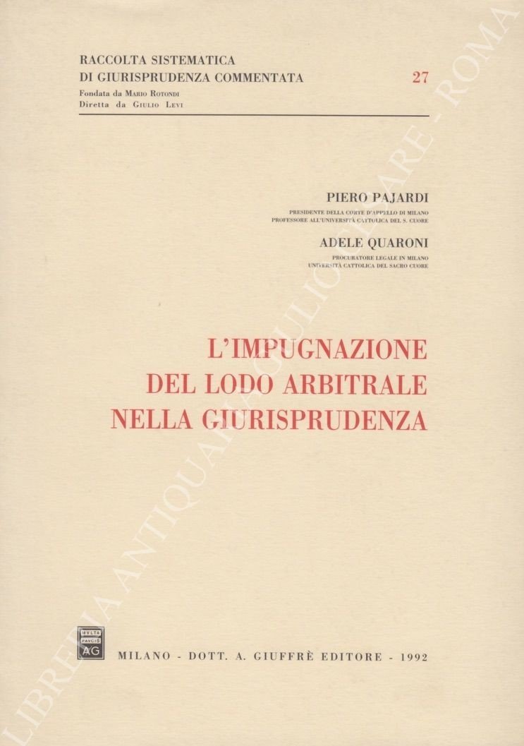 L'impugnazione del lodo arbitrale nella giurisprudenza | Libri antichi e moderni | Pajardi Piero - Quaroni Adele