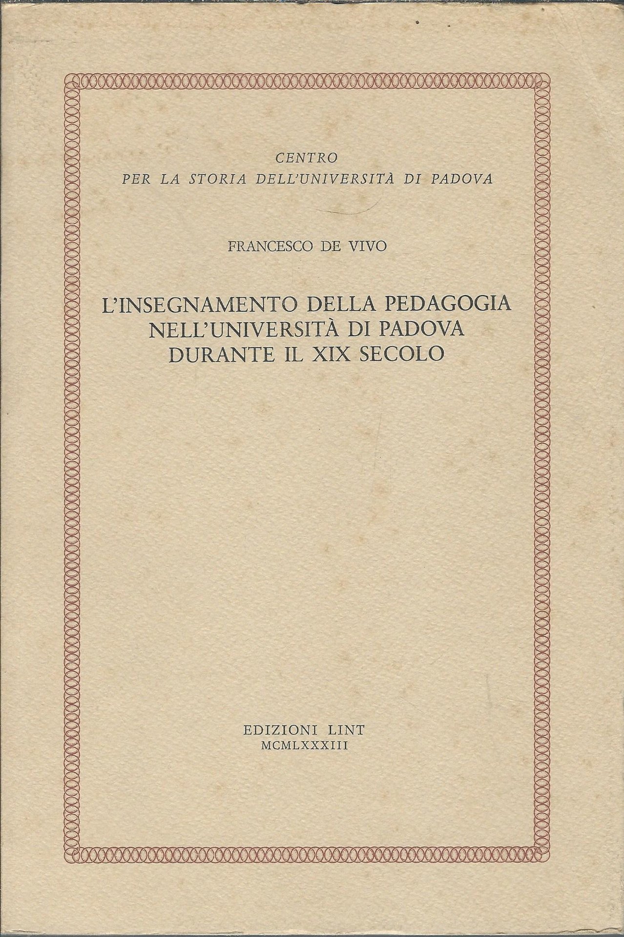 L'INSEGNAMENTO DELLA PEDAGOGIA NELL'UNIVERSITA' DI PADOVA DURANTE IL XIX SECOLO | Libri antichi e moderni | Francesco De Vivo
