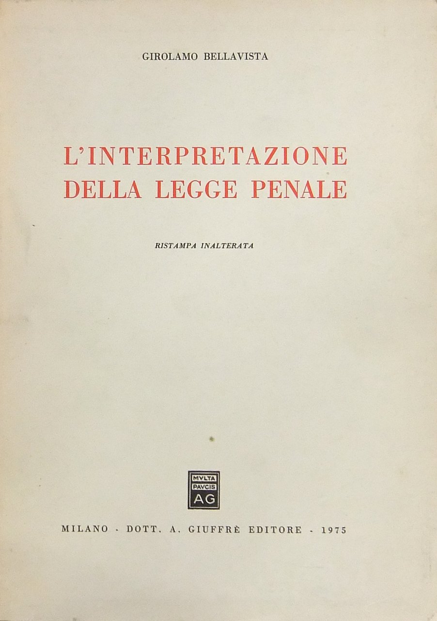 L'interpretazione della legge penale | Libri antichi e moderni | Bellavista Girolamo (1908-1976)