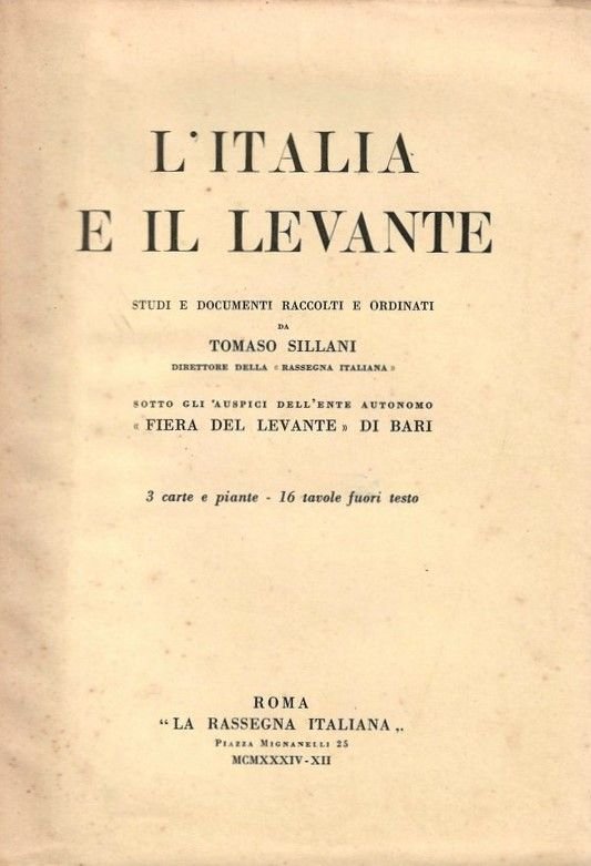 L'Italia e ilk Levante. Studi e documenti, sotto gli auspici dell'ente autonomo 'Fiera del Levante ' di Bari. | Libri antichi e moderni | Sillani Tomaso.