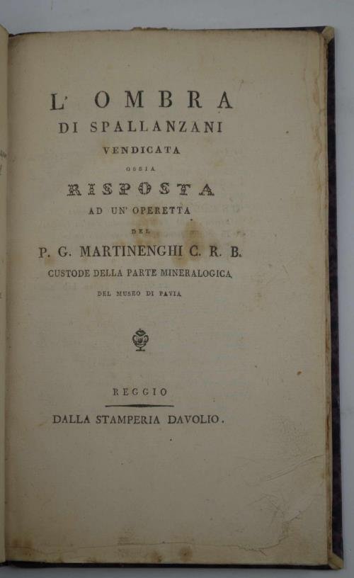 L'ombra di Spallanzani vendicata ossia risposta ad un'operetta del P.G. Martinenghi… custode della parte mineralogica del Museo di Pavia.