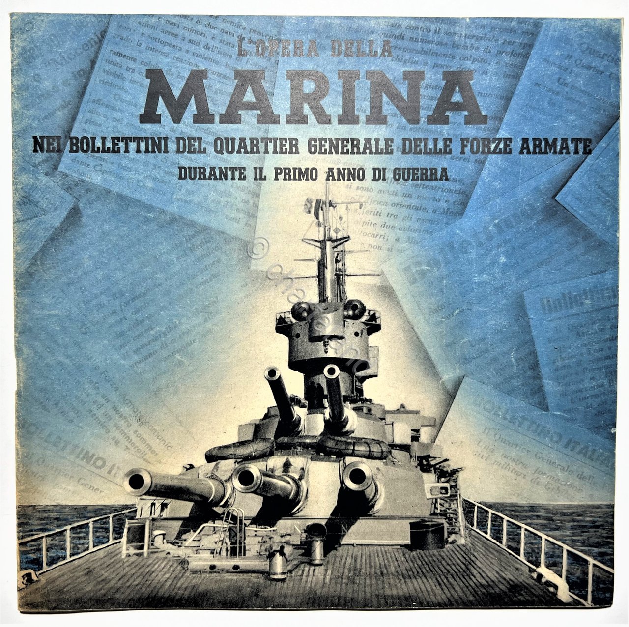 L'Opera della Marina nei Bollettini del Quartier Generale delle Forze Armate durante il primo anno di guerra - ed. 1941 Ufficio collegamenti stampa Ministero Marina Testo in lingua italiana. Pagine 28 con illustrazioni. Copertina morbida. Condizioni molto buone.