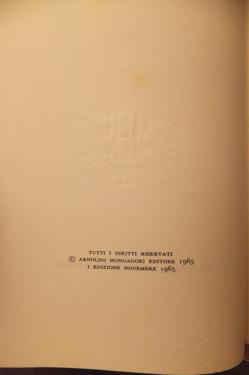 MONDADORI 1965 PRIMA EDIZIONE BROSSURA 20 X 14 PP. 267 CONDIZIONI, PRESENZA MACCHIE AI PIATTI E/TAGLI QUALCHE MACCHIA INTERNO VOLUME.