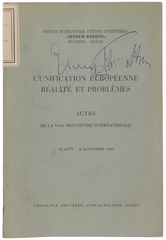 L'UNIFICATION EUROPEENNE REALITE' ET PROBLEMES. Actes le la Vème rencontre internationale. 29 Aout - 2 septembre 1961. | Libri antichi e moderni | Autori Vari.