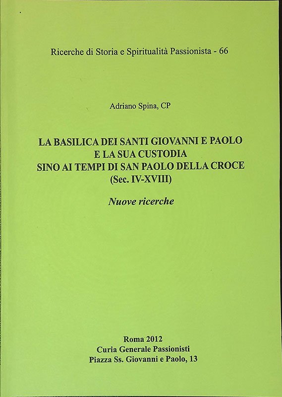 La Basilica dei Santi Giovanni e Paolo e la sua custodia sino ai tempi di San Paolo Della Croce. Sec. IV-XVIII | Libri antichi e moderni | Spina Adriano