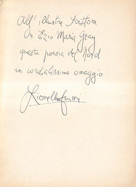 Prima edizione con invio autografo dell'Autore allo scrittore Ezio Maria Gray. Allegato un ulteriore e analogo dattiloscritto, sempre firmato da Fiumi - Brossura originale illustrata, 109 pagine. Appunti a penna all'ultima pagina di indice, minimi segni d'uso esterni, nel complesso bell'esemplare di questa rara edizione. SPEDIZIONE IN 24 ORE DALLA CONFERMA DELL'ORDINE.