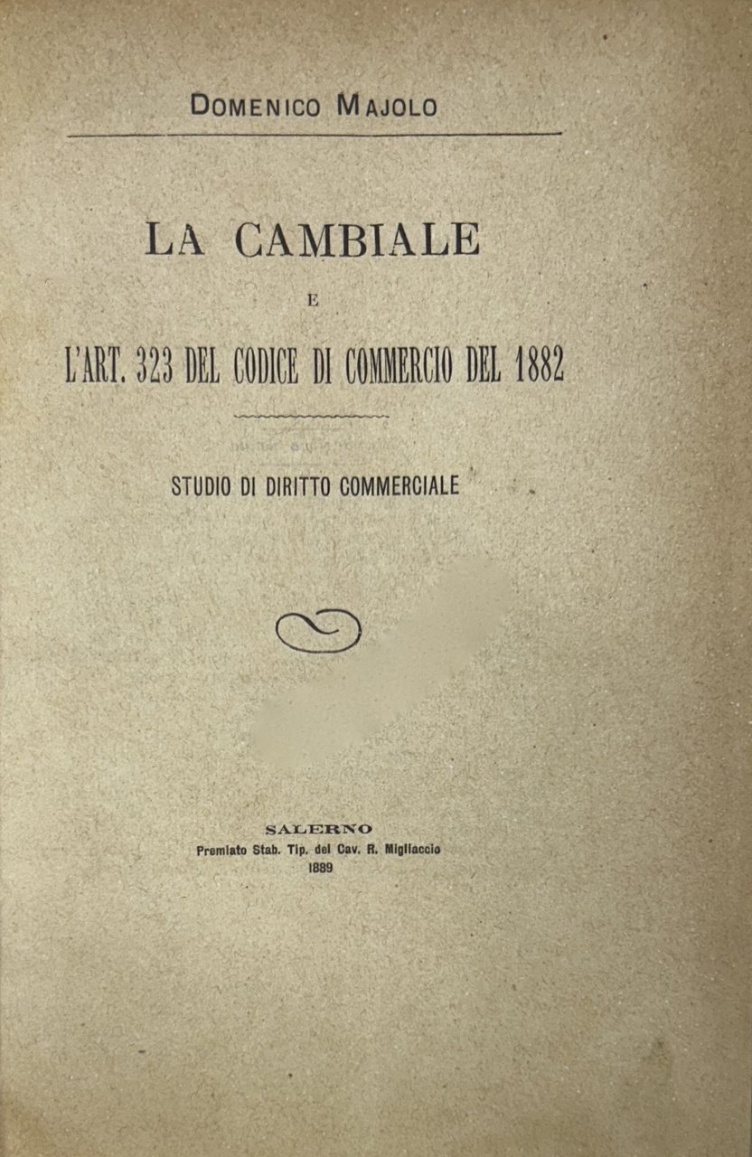 La cambiale e l'Art. 323 del Codice di commercio del 1882. Studio di diritto commerciale. UNITO A: Altre monografie | Libri antichi e moderni | Majolo Domenico