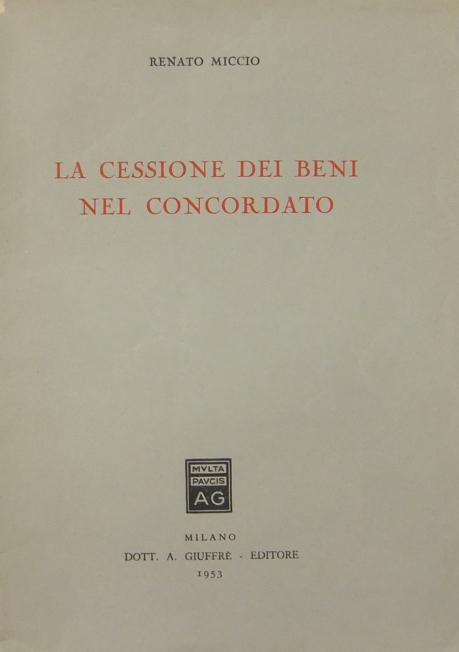 La cessione dei beni nel concordato | Libri antichi e moderni | Miccio Renato