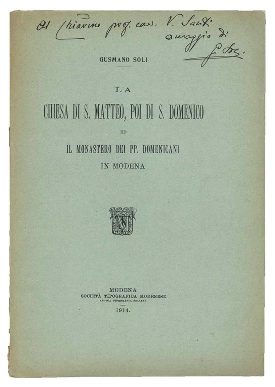 La Chiesa di s. Matteo, poi di s. Domenico ed il Monastero dei pp. Domenicani in Modena. | Libri antichi e moderni | SOLI, Gusmano