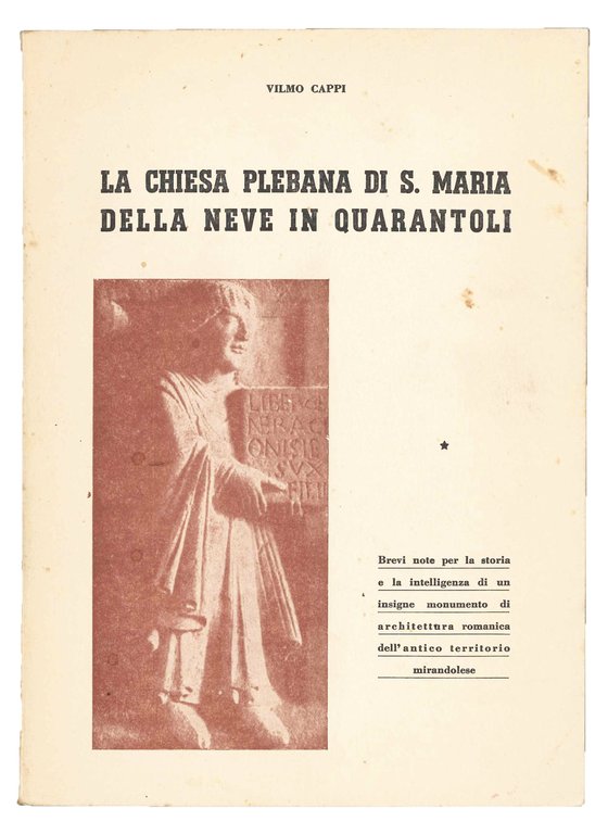 La Chiesa plebana di s. Maria della neve in quarantoli. Brevi note per la storia e la intelligenza di un insigne monumento di architettura romanica dell'antico territorio mirandolese. | Libri antichi e moderni | CAPPI, Vilmo