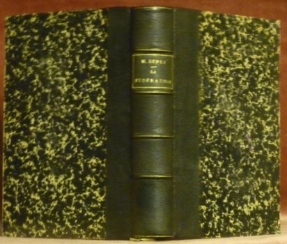 • Pièce de titre avec auteur et titre dorés. Faux-nerfs. Plats papier marbré. Cachet de bibliothèque sur page de titre, autrement bel exemplaire.