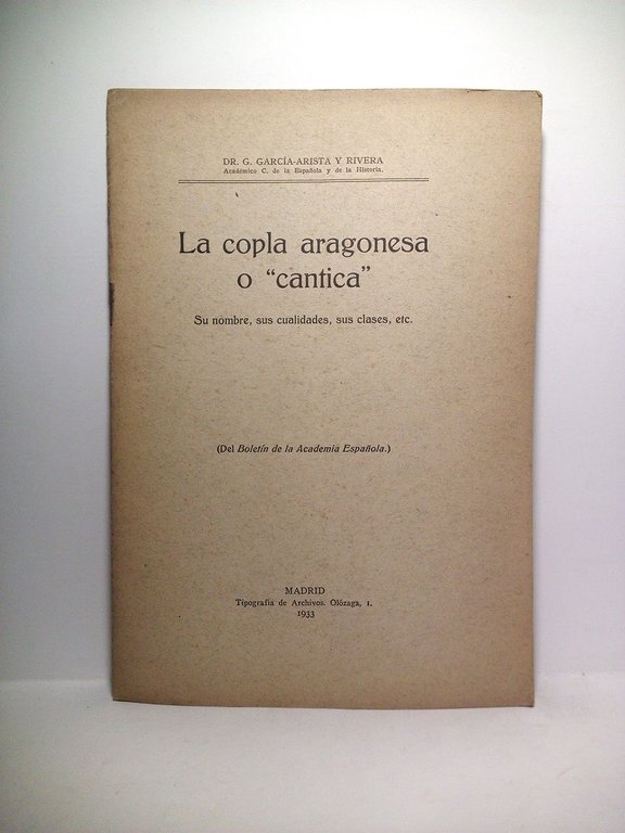 La copla aragonesa o "cantica": Su nombre, sus cualidades, sus clases, etc. | Libri antichi e moderni | Garcia-Arista Y Rivera, Dr. G.