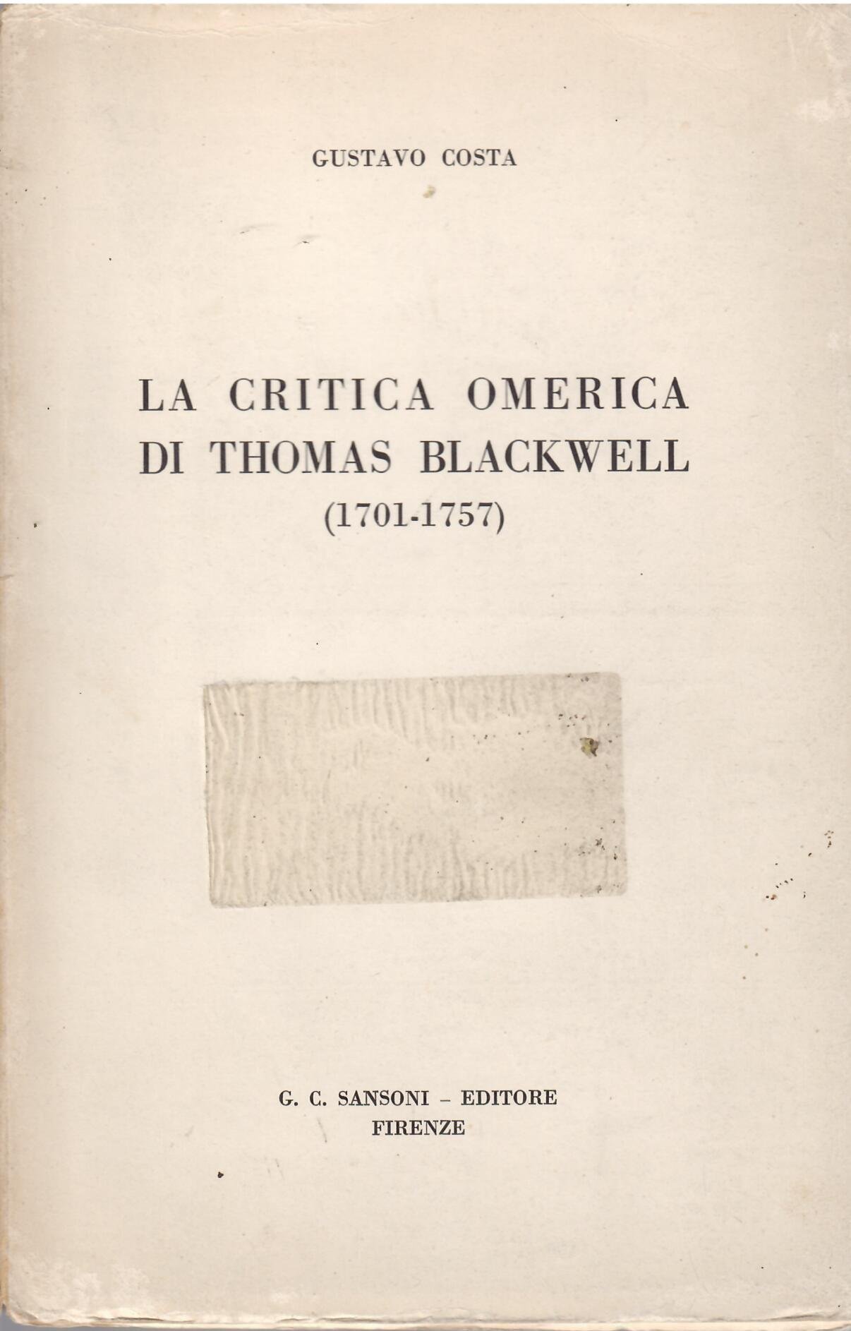 LA CRITICA OMERICA DI THOMAS BLACKWELL (1701-1757) | Libri antichi e moderni | Costa Gustavo