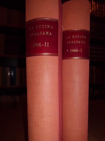 2 volumi in - 4°, rilegati in tela editoriale con tasselli e titoli in oro. Raccolta di riviste della famosa serie nelle quali si trattano ricette dell' epoca illustrate a colori anche a piena pagina e curiosità del periodo che vanno dalle pubblicità di allora, ai personaggi e alle case, alla moda. Annata completa 1966 da Gennaio a Dicembre.