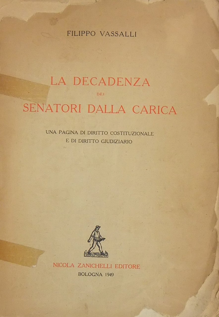 La decadenza dei senatori dalla carica. Una pagina di diritto costituzionale e di diritto giudiziario | Libri antichi e moderni | Vassalli Filippo (1885-1955)