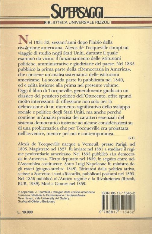 - Politica, pensiero politico, Democrazia, America , Saggio , Ottocento