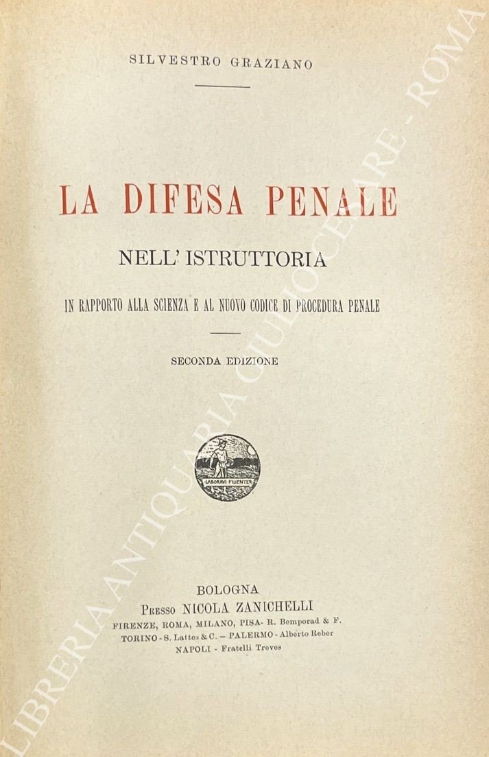 La difesa penale nell'istruttoria in rapporto alla scienza e al nuovo Codice di procedura penale | Libri antichi e moderni | Graziano Silvestro