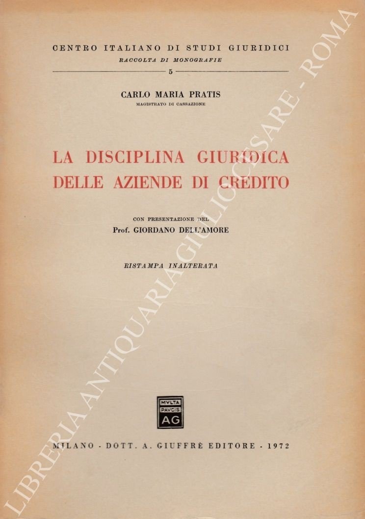 La disciplina giuridica delle aziende di credito. Con presentazione del Prof. Giordano Dell'Amore | Libri antichi e moderni | Pratis Carlo Maria