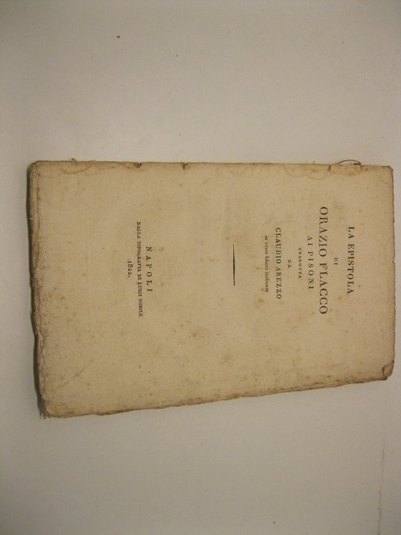 La epistola di Orazio Flacco ai Pisoni. Tradotta da Claudio Arezzo in verso libero italiano. | Libri antichi e moderni | Orazio Flacco