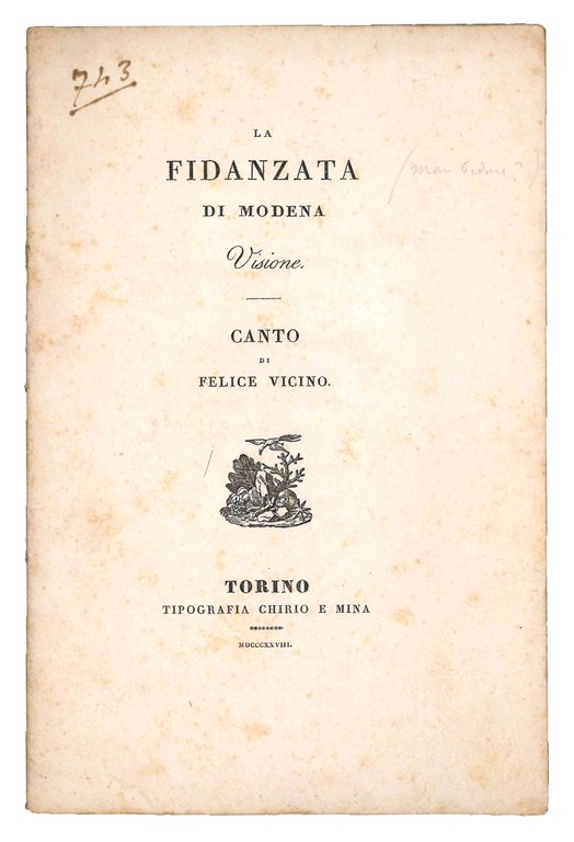 La fidanzata di Modena, visione. | Libri antichi e moderni | VICINO, Felice