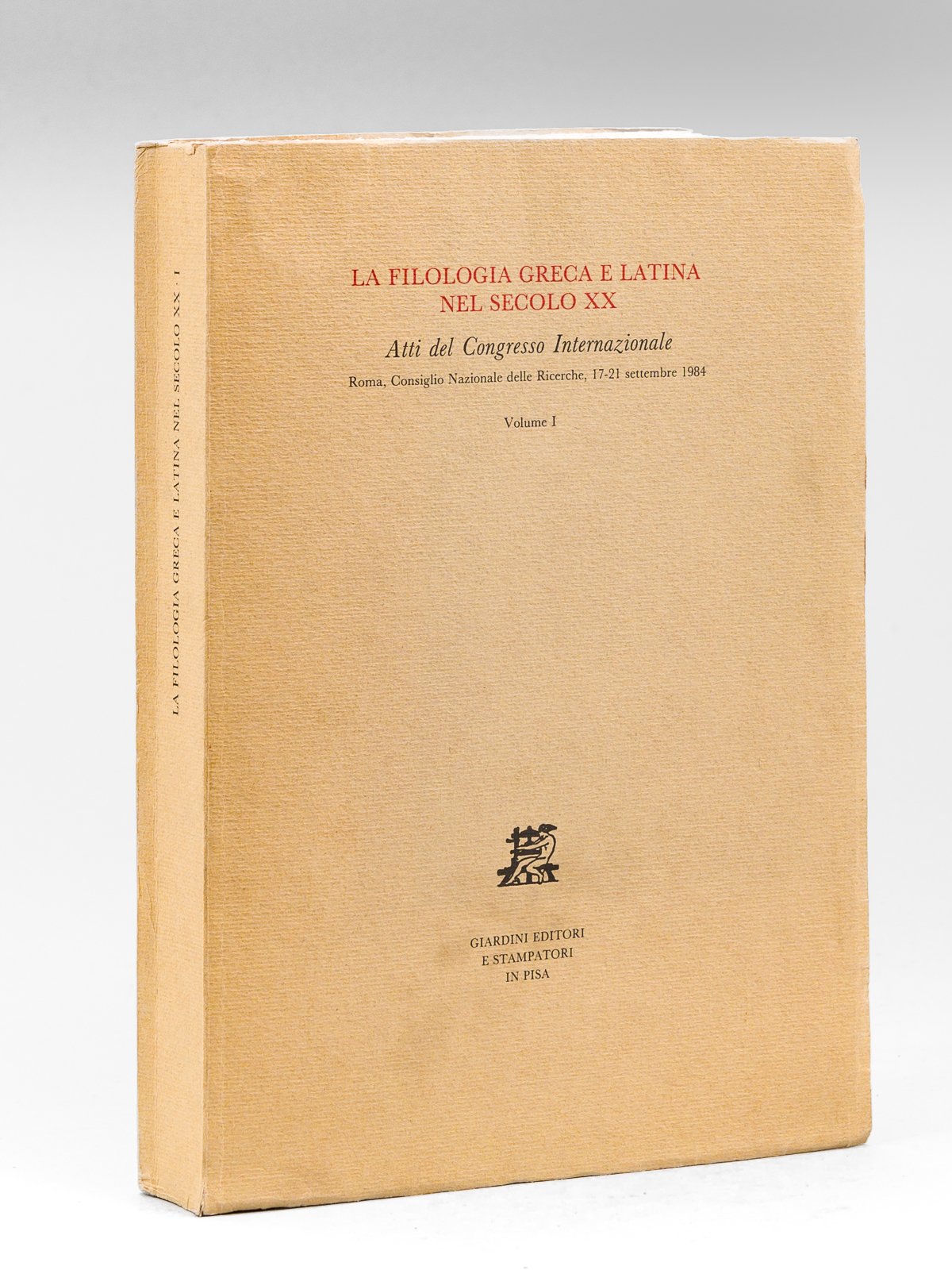 La Filologia Greca e Latina nel secolo XX. Atti del Congresso Internazionale. Roma, Consiglio Nazionale delle Ricerche 17-21 settembre 1984. Volume I