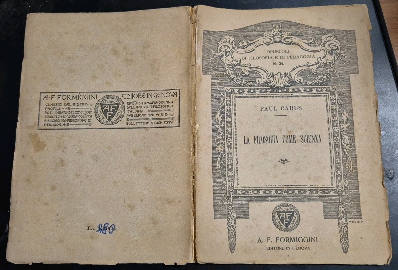 LA FILOSOFIA COME SCIENZA di Paul Carus 1914 Formiggini Libro Opuscoli Pegagogia | Libri antichi e moderni |