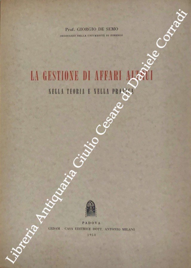 La gestione di affari altrui nella teoria e nella pratica | Libri antichi e moderni | De Semo Giorgio