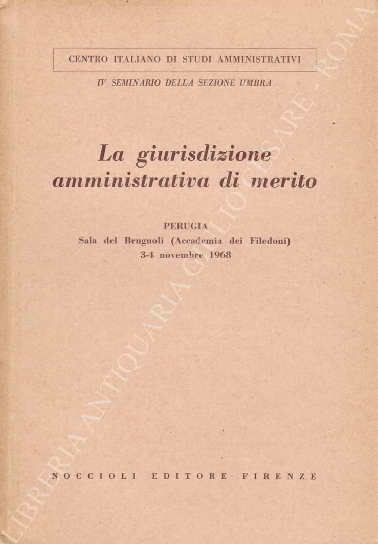 La giurisdizione amministrativa di merito. Perugia Sala, del Brugnoli (Accademia dei Filedoni) 3-4 novembre 1968 | Libri antichi e moderni | Fragola Umberto - Gasparri Pietro - Guicciardi Enrico - Nigro Ma, Rio - Pototschnig Umberto Et Alii