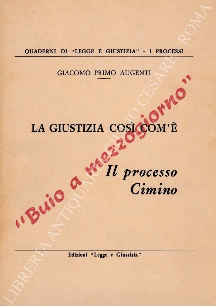 La giustizia così com'è. Il processo Cimino. "Buio a mezzogiorno" | Libri antichi e moderni | Augenti Giacomo Primo