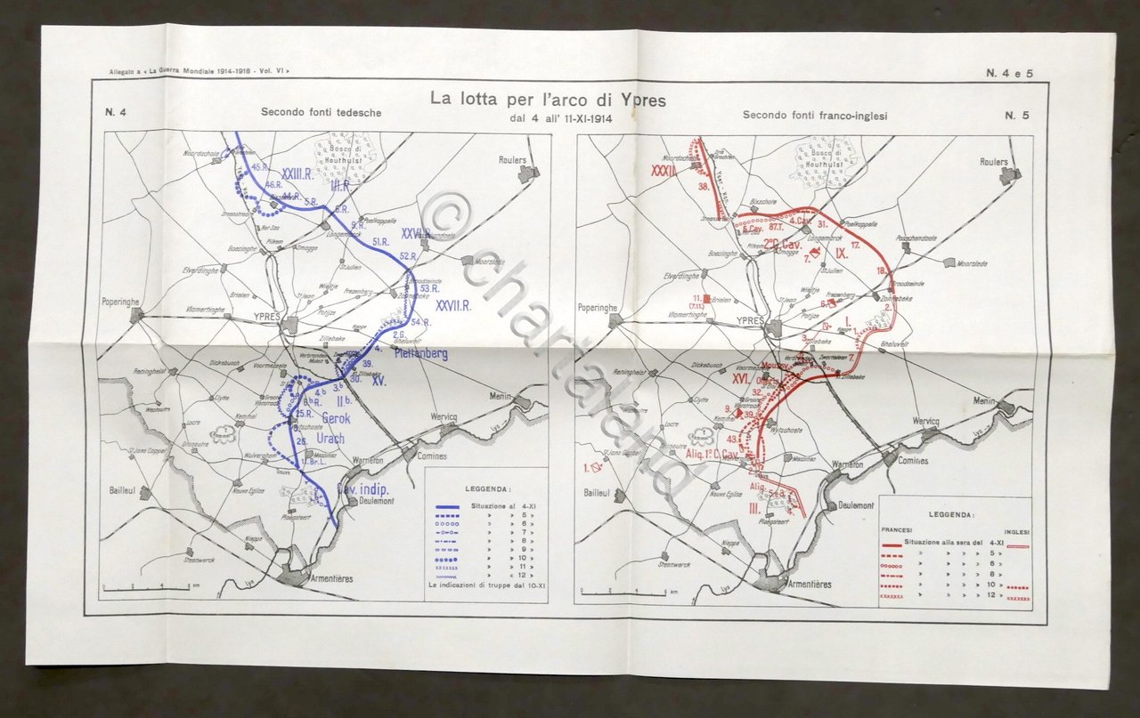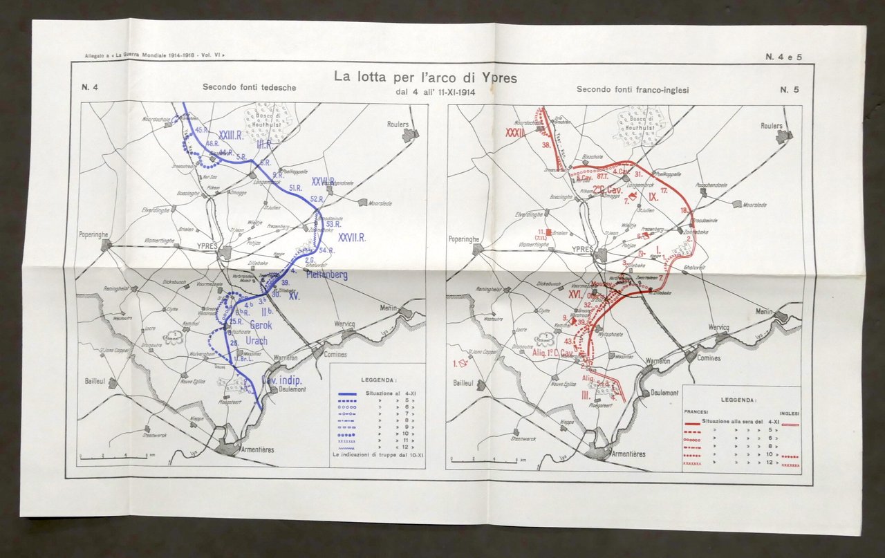 Ministero della guerra, Comando del corpo di Stato Maggiore, Ufficio storico La Guerra mondiale 1914-1918 - Compilazione dell'archivio di stato germanico - Traduzione del generale di divisione Ambrogio Bollati. Vol. VI, La Campagna autunnale del 1914, Il termine delle operazioni nell'Ovest e nell'est - ed. 1931 Pag. 581. Completo delle 21 tavole allegate. Condizioni generali molto buone. Piccoli segni del tempo.