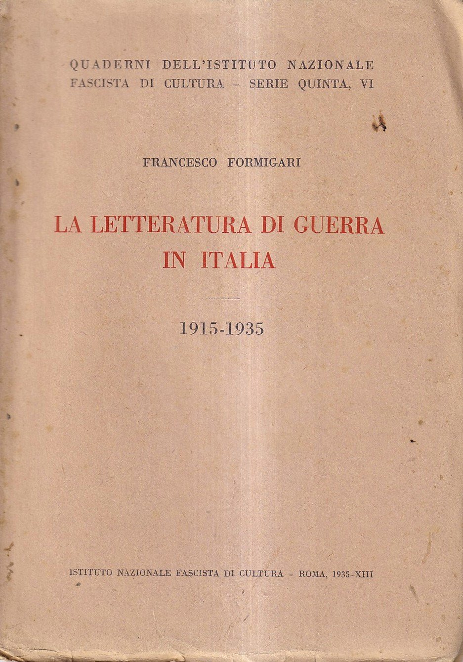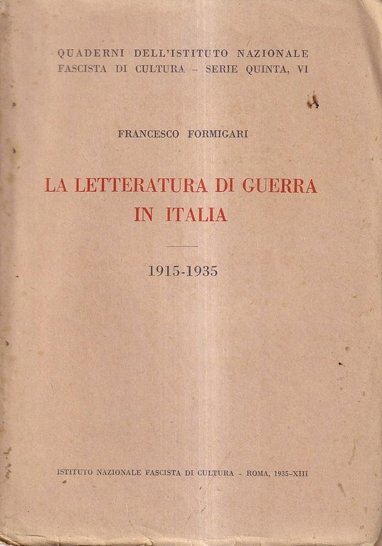 La Letteratura di Guerra in Italia, 1915-1935