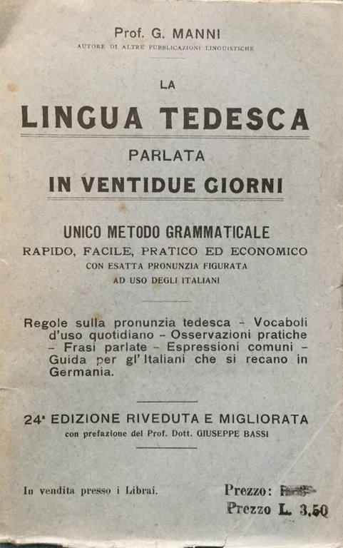 La lingua tedesca parlata in 22 giorni | Libri antichi e moderni | Manni, G.