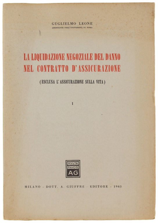 LA LIQUIDAZIONE NEGOZIALE NEL CONTRATTO D'ASSICURAZIONE (esclusa l'assicurazione della vita) | Libri antichi e moderni | Leone Guglielmo.