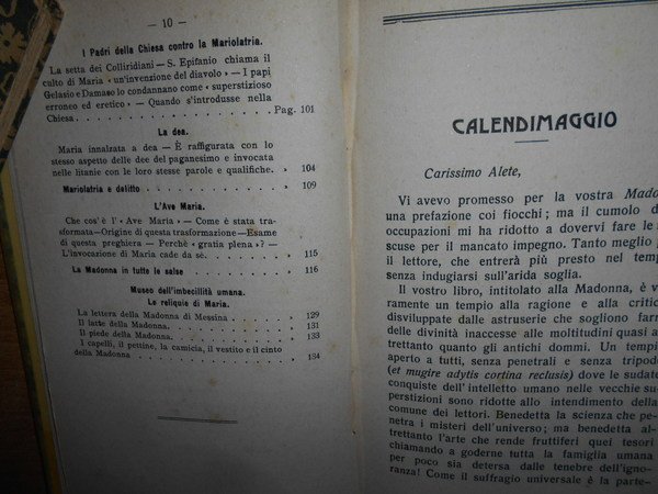 (Critica religiosa) Alete Dal Canto. Ferrara, Stabilimento Tipografico Ferrarese, s.d (c. 1915). In-16° piccolo, m. tela con velina trasparente di protezione. 134 pp. con alcune tavole fuori testo e illustrazioni n.t. I fase di rilegatura è stata rifilata la L dal titolo ma in ottimo stato di conservazione. Neg. esot. mob. 51