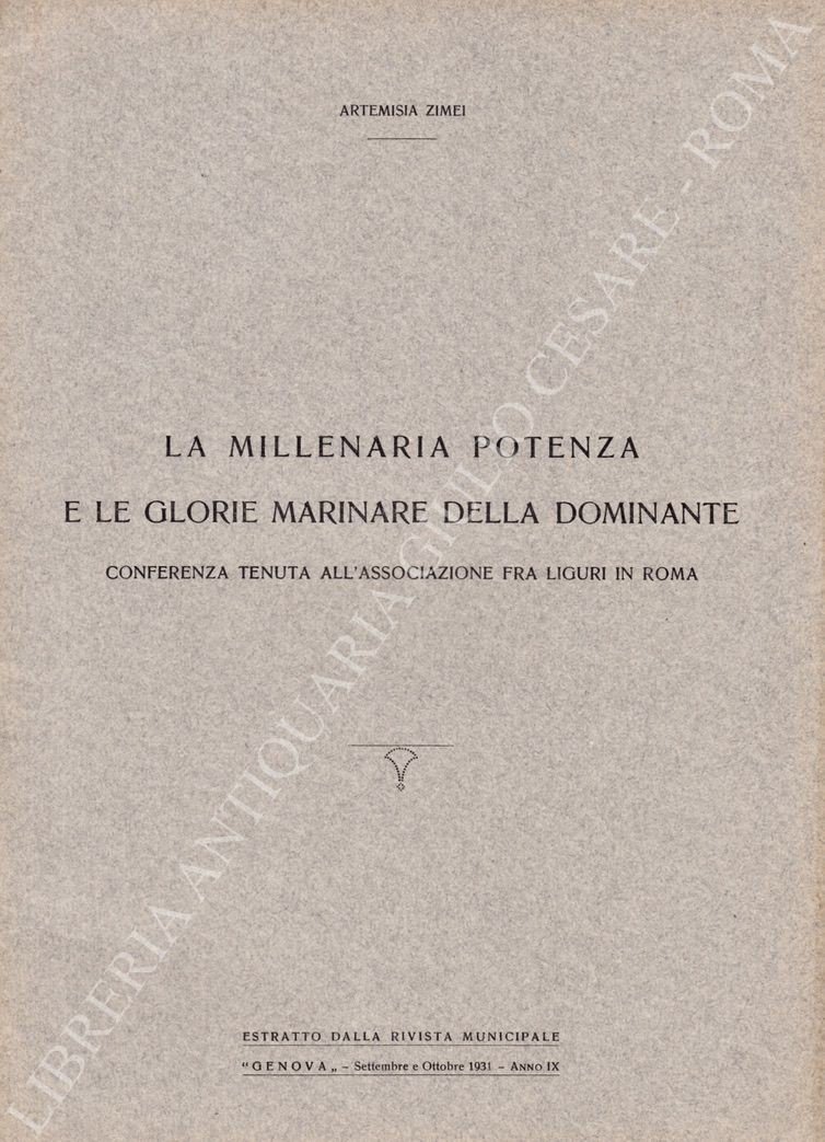 La millenaria potenza e le glorie marinare della dominante. Conferenza tenuta all'associazione fra liguri in Roma | Libri antichi e moderni | Zimei Artemisia