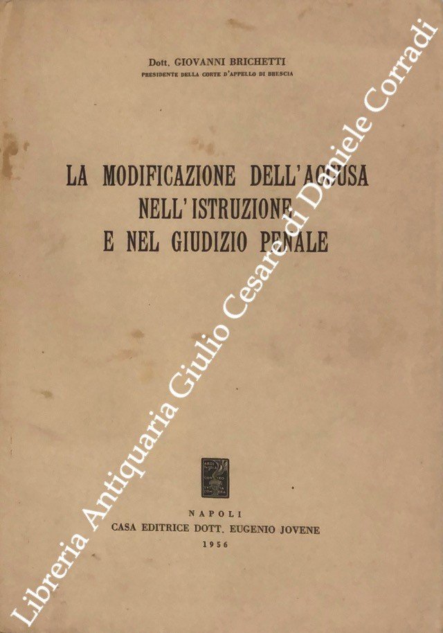 La modificazione dell'accusa nell'istruzione e nel giudizio penale | Libri antichi e moderni | Brichetti Giovanni