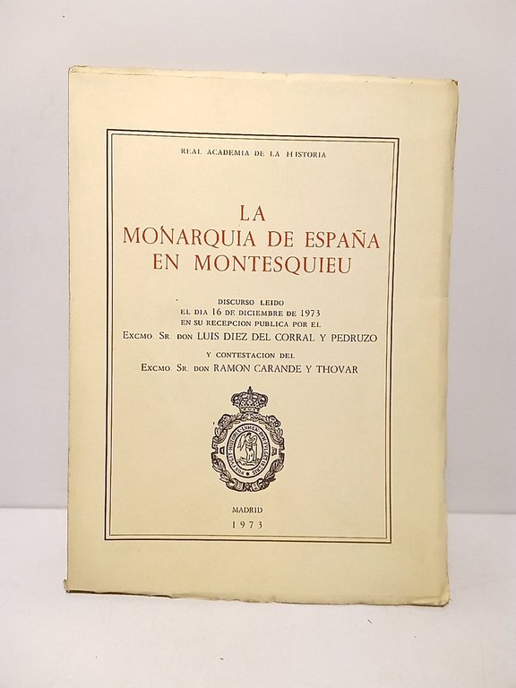 La Monarquía de España en Montesquieu. (Discurso de ingreso en la Real Academia de la Historia. CONTESTA: Ramón Carande y Thovar) | Libri antichi e moderni | Diez Del Corral Y Pedruzo, Luis