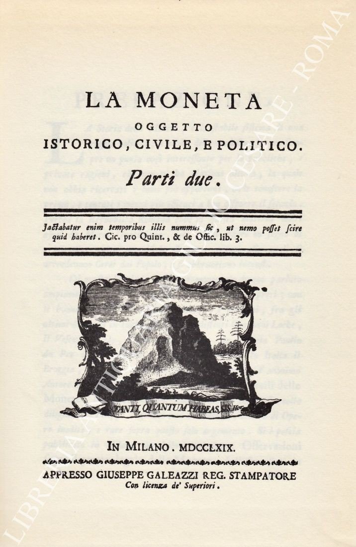 La moneta oggetto istorico, civile, e politico. Parti due | Libri antichi e moderni | Franzi Sebastiano