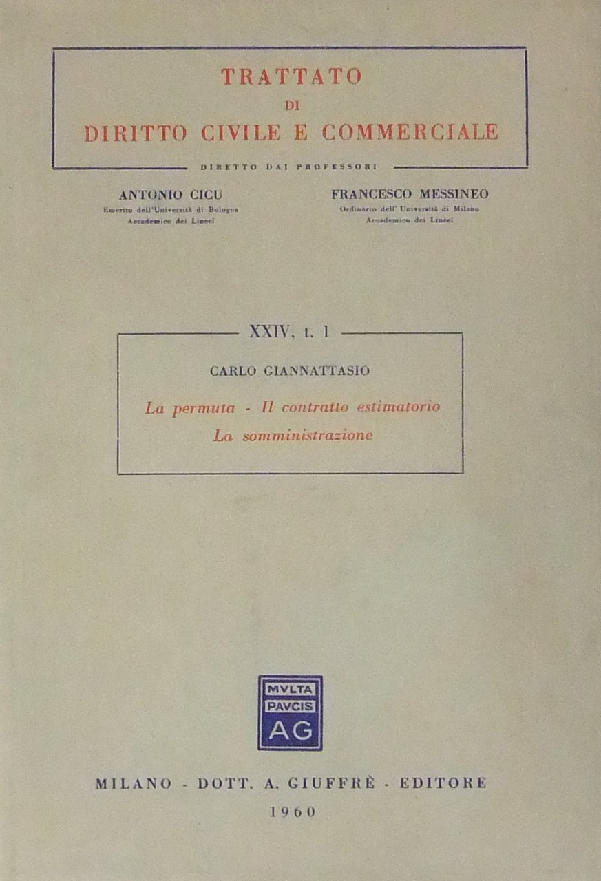 La permuta. Il contratto estimatorio. La somministrazione | Libri antichi e moderni | Giannattasio Carlo