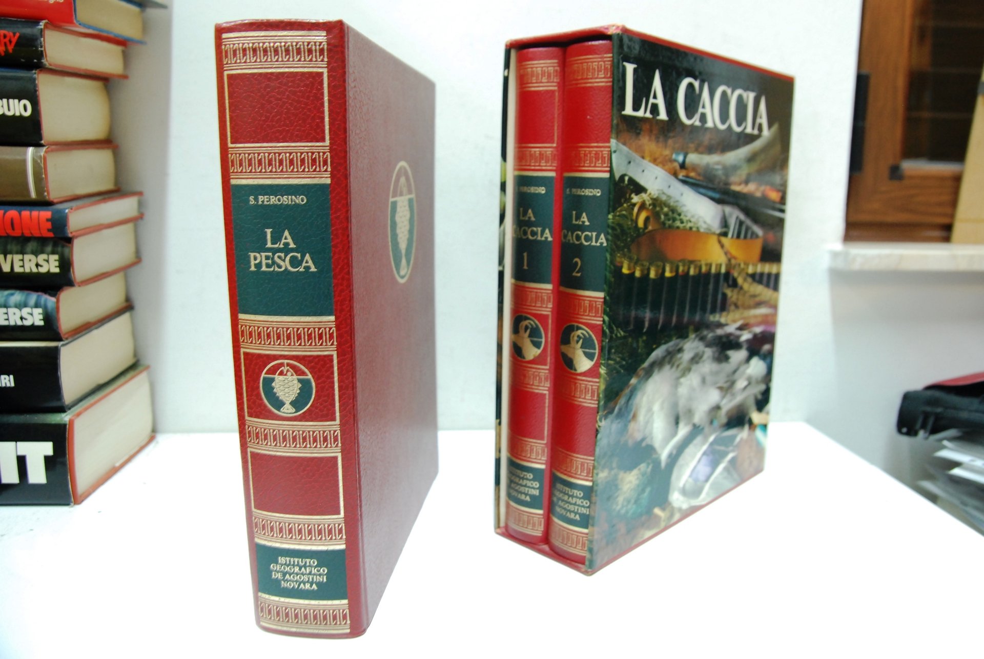 Perosino La pesca ( 1 vol.) e la caccia (2 vol.). De Agostini Ottime Rilegati + cofanetti .