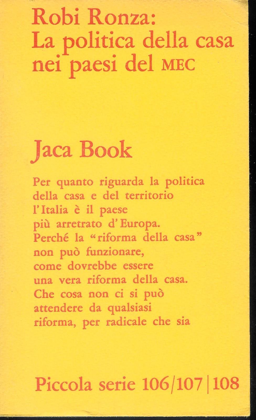 La politica della casa nei paesi del MEC | Libri antichi e moderni | Ronza, Robi, ,Ronza, Robi