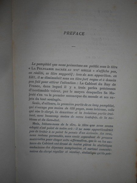 La Polygamie Sacrée au XVI Siècle. Première réédition d' un Pamphlet anonyme de 1581 | Libri antichi e moderni | Préface, Introduction, Notes Et Appendice Par Jean Hervez