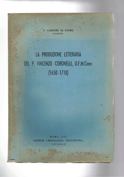La produzione letteraria del P. Vincenzo Coronelli O.F.M. conventuale (1650-1718). Estratto. | Libri antichi e moderni | Di Fonzo Lorenzo.