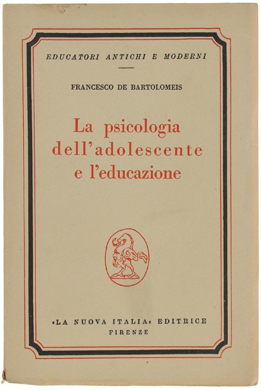 LA PSICOLOGIA DELL'ADOLESCENTE E L'EDUCAZIONE. | Libri antichi e moderni | De Bartolomeis Francesco.