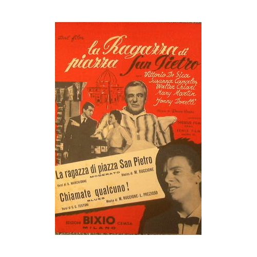 Autori Marchionne A., Ruccione M., Testoni G. C. e Prezioso L. - Dal film ' La ragazza di piazza san Pietro ' con Vittorio De Sica, Susanna Canales, Walter Chiari, Mary Martin, Jonny Dorelli, Regia di Pietro Costa; Produzione Theseus Film Roma - in 8° - pp.19 - Brossura editoriale illustrata - Partitura per Pianoforte, Violino/Fisarmonica, Saxofono Contralto, Saxofono Tenore, Tromba e Contrabbasso/Chitarra