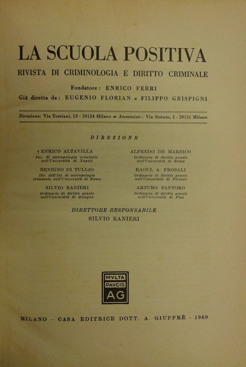 La Scuola Positiva. Rivista di criminologia e diritto criminale. Annata 1969 | Libri antichi e moderni | Autori Vari