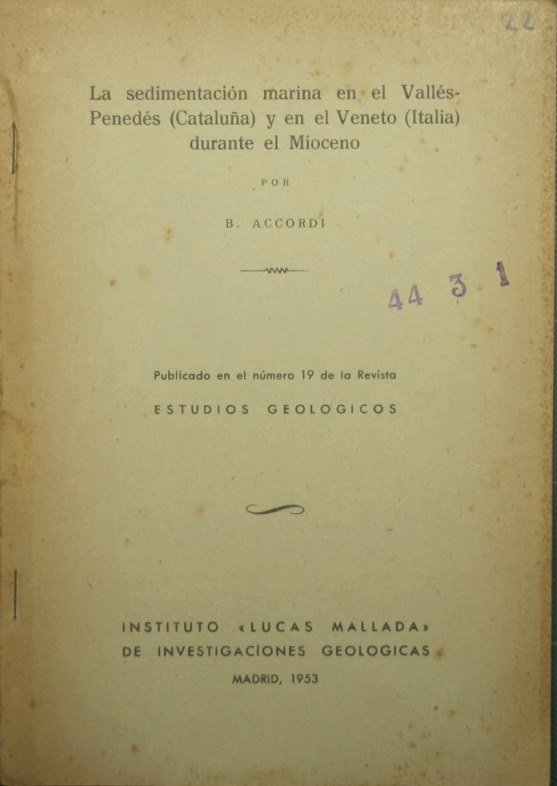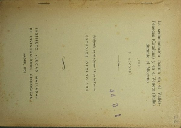 La sedimentacion marina en el Valles-Penedes (Cataluna) y en el Veneto (Italia) durante el Mioceno | Libri antichi e moderni | Accordi Bruno
